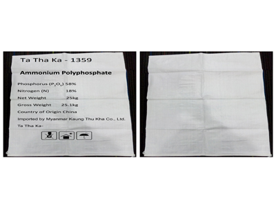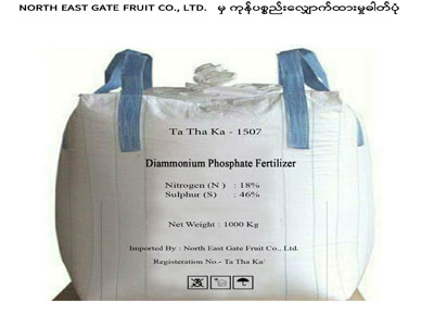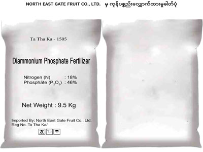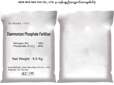 | 1207 | Wi Sar Ra International Trading Co., Ltd. | Diammonium Phosphate Fertilizer | 50 Kg | (N: 18%, P2O5 : 46%) | SFR-IE-002772 | 1285 | ၁၉.၃.၂၀၂၈ | Compound |