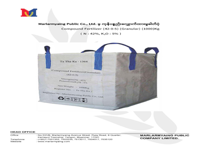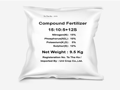 | 1255 | Uni Crop Co., Ltd. | Compound Fertilizer (15-10-5+12S) | (1000, 1250 Kg) | (N : 15%, P2O5 : 10 %, K2O : 5 %, S : 12%) | SFR-IE-002721 | 1333 | ၁၉.၃.၂၀၂၈ | Compound |