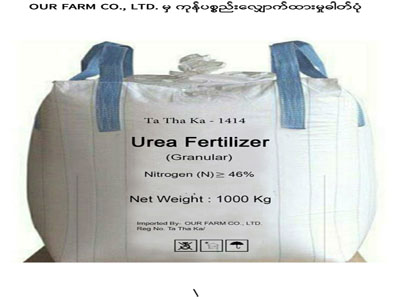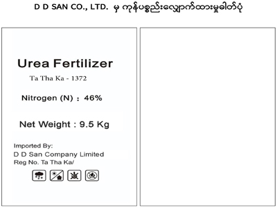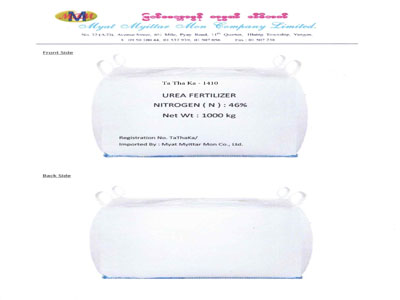 | 61 | Myanma Shwe Nagar Agricultural Group Co., Ltd. | Urea Fertilizer | 50 Kg/ 1000 kg (50x25)= 1250Kg | (N ≥ 46%) | 086 | ၃.၃.၂၀၂၆ | Urea | |