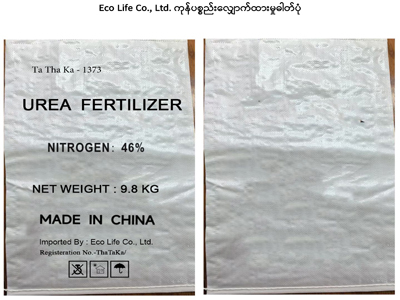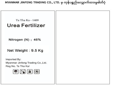 | 1241 | Seinn Lae Thwin Co., Ltd. | Urea Fertilizer | (9, 9.5, 9.9, 10, 15 Kg) | ( N≥46% ) | SFR-IE-002926 | 1319 | ၁၉.၃.၂၀၂၈ | Urea |