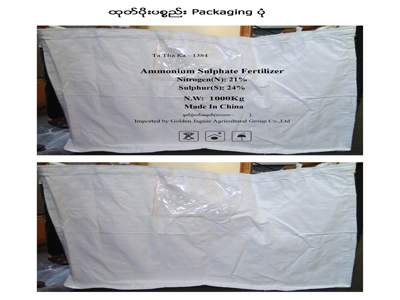 | 1230 | Global Crop Co., Ltd. | Ammonium Sulphate Fertilizer | (1000, 1250 Kg) | (N : 21%, S : 24%) | SFR-IE-002692 | 1308 | ၁၉.၃.၂၀၂၈ | AS |