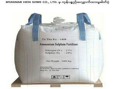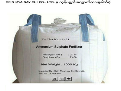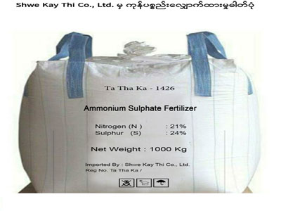 | 1272 | We Win Co., Ltd. | Ammonium Sulphate Fertilizer ( Raw Material ) | (1000, 1250, 1350 Kg), Shipment | (N : 21%, S : 24%) | SFR-IE-002920 | 1350 | ၁၉.၃.၂၀၂၈ | AS |