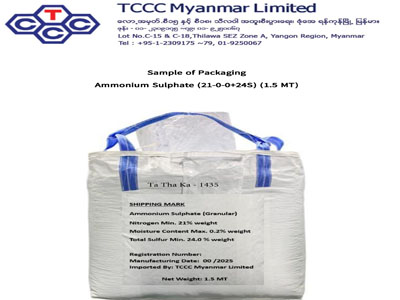 | 22 | Myanmar Vita Co., Ltd | Ammonium Sulphate | 25 TNE/ 1250/50kg | (N:20.5%Min, S:23.5%Min) | 034 | ၁၃.၁၁.၂၀၂၅ | AS | |