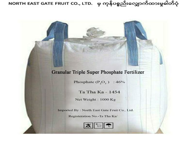 | 1187 | Paungde Shwe Myay Co.,Ltd. | Granular Triple Super Phosphate Fertilizer (GTSP) | (50, 1000, 1200, 1350 Kg), Shipment | (P2O5 : 46%) | SFR-IE-002733 | 1265 | ၁၉.၃.၂၀၂၈ | Phosphate |
