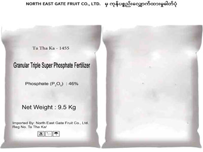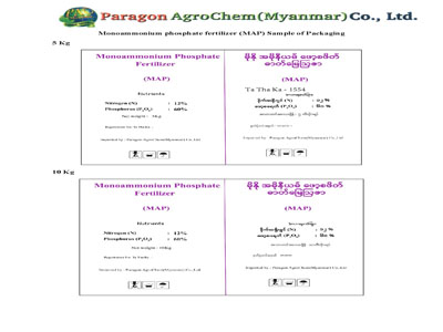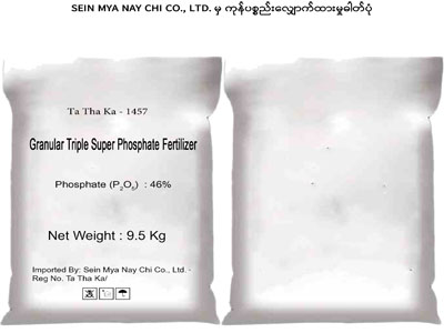 | 94 | Uni Crop Co., Ltd. | Monoammonium Phosphate MAP (60%) | 1000 kg | (N:10%, P2O5:50%) | 121 | ၁၈.၆.၂၀၂၆ | Compound | |