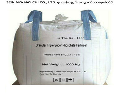 | 1193 | Shwe Ma Naw Myay Trading Co., Ltd. | Granular Triple Super Phosphate Fertilizer (GTSP) | (50, 1000, 1200, 1350 Kg), Shipment | (P2O5 : 46%) | SFR-IE-002739 | 1271 | ၁၉.၃.၂၀၂၈ | Phosphate |