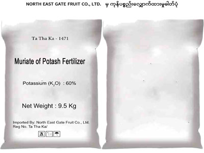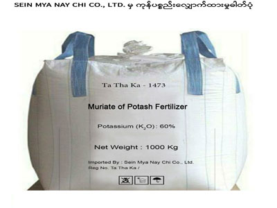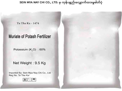 | 1231 | Global Crop Co., Ltd. | Muriate of Potash Fertilizer (MOP) | (1000 , 1250 Kg) | (K2O:60%) | SFR-IE-002694 | 1309 | ၁၉.၃.၂၀၂၈ | Potash |