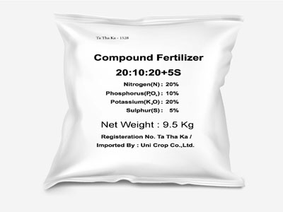 | 1260 | Uni Crop Co., Ltd. | Compound Fertilizer (20-20-10+5S) | (1000, 1250 Kg) | (N : 20%, P2O5 : 20 %, K2O : 10 %, S : 5%) | SFR-IE-002726 | 1338 | ၁၉.၃.၂၀၂၈ | Compound |