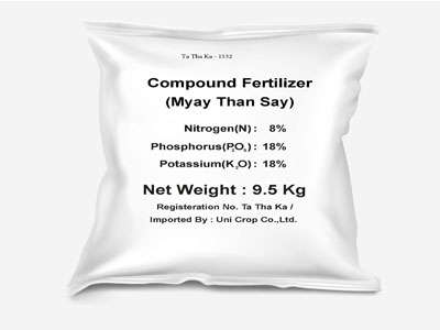 | 1254 | Uni Crop Co., Ltd. | Compound Fertilizer (10-10-5) | (1000 / 1250 Kg) | (N:10%, P2O5:10%, K2O:5%) | SFR-IE-002475 | 1332 | ၁၉.၃.၂၀၂၈ | Compound |