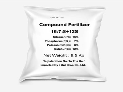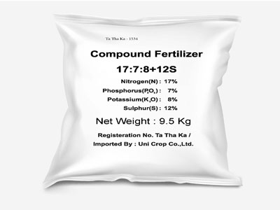 | 1257 | Uni Crop Co., Ltd. | Compound Fertilizer (17-7-8+12S) | (1000, 1250 Kg) | (N : 17%, P2O5 : 7 %, K2O : 8 % , S : 12%) | SFR-IE-002723 | 1335 | ၁၉.၃.၂၀၂၈ | Compound |