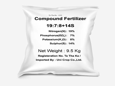 | 1258 | Uni Crop Co., Ltd. | Compound Fertilizer(19-7-8+14S) | (1000, 1250 Kg) | (N: 19%, P2O5 : 7 %, K2O : 8 %, S : 14%) | SFR-IE-002724 | 1336 | ၁၉.၃.၂၀၂၈ | Compound |