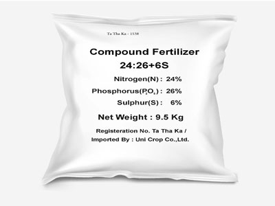 | 1261 | Uni Crop Co., Ltd. | Compound Fertilizer (24-26-0+6S) | (1000, 1250 Kg) | (N : 24%, P2O5 : 26 %, S : 6%) | SFR-IE-002727 | 1339 | ၁၉.၃.၂၀၂၈ | Compound |